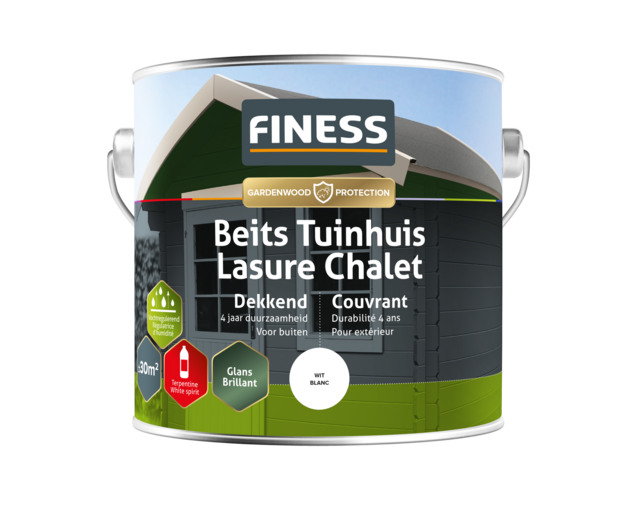 Vochtregulerende, waterafstotende, glanzende en dekkende beits. Biedt 4 jaar bescherming aan alle tuinhoutwerken als pergola’s, tuinhuisjes, schuttingen, speeltoestellen, etc. Ook geschikt voor geïmpregneerd hout. Dringt goed in het hout en hecht uitstekend. Goed bestand tegen weersinvloeden.