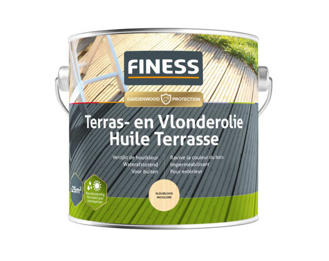 Kleurloze olie voor bescherming en onderhoud van houten terrassen en vlonders. Voor buiten.