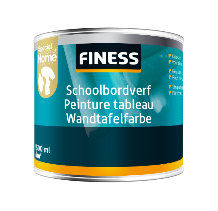 Special unlimited washable wall paint which you can write on with chalk. Create a blackboard of every wall or door! Make a magnetic blackboard by combining this paint with Finess magnetic paint. For interior usage.