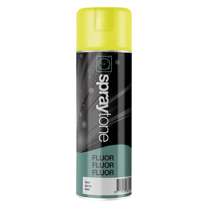 Fluorescent top coat paint, quick drying and ideally suited for use on substrates such as wood, metal, various hard plastics and ceramics. For interior and exterior use. The surface must be clean, dry and free of grease. Remove any rust and flaking paint layers first before sanding. In the case of exterior applications, remove all moss, mould and algal growth. Mask off the surrounding area. In case of hard plastics, in doubt of adhesion, first spray a test patch. Apply a basecoat with SPRAYTONE Primer.