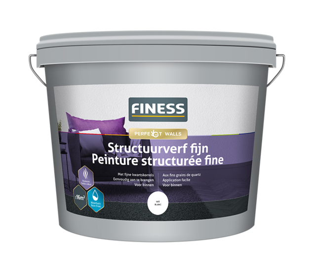 Easy to apply white texture water-based paint with fine quartz grains. Suitable for all normal interior wall and ceiling surfaces. Can be top coated with emulsion paint.
